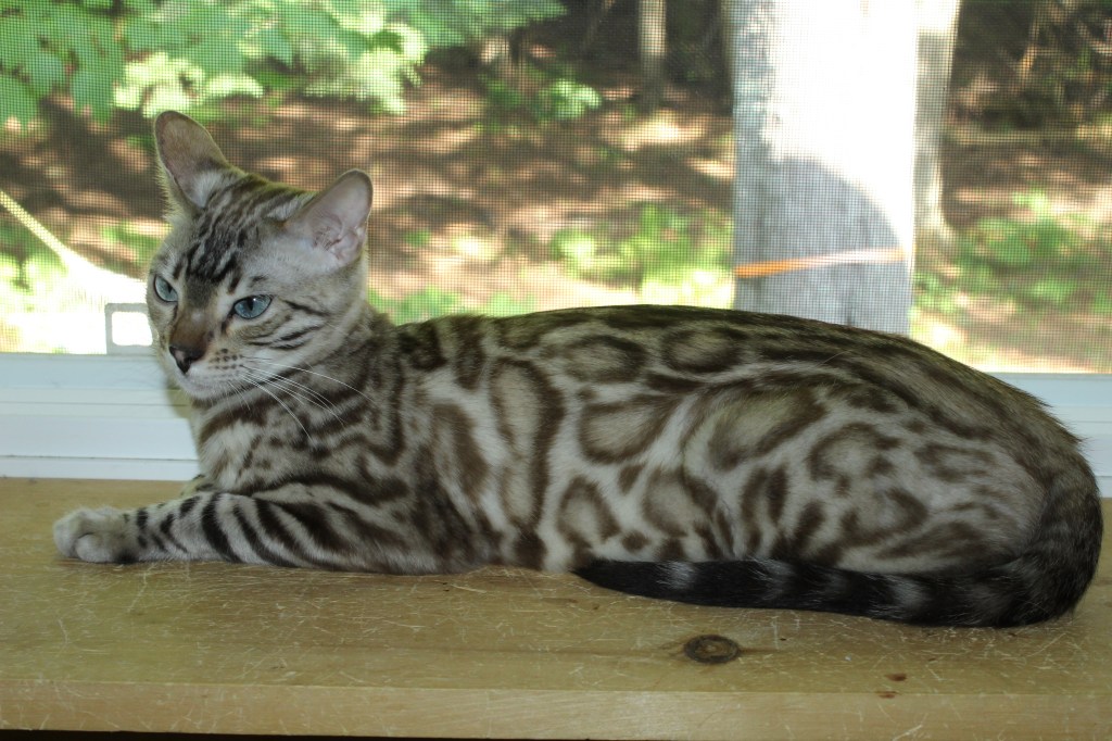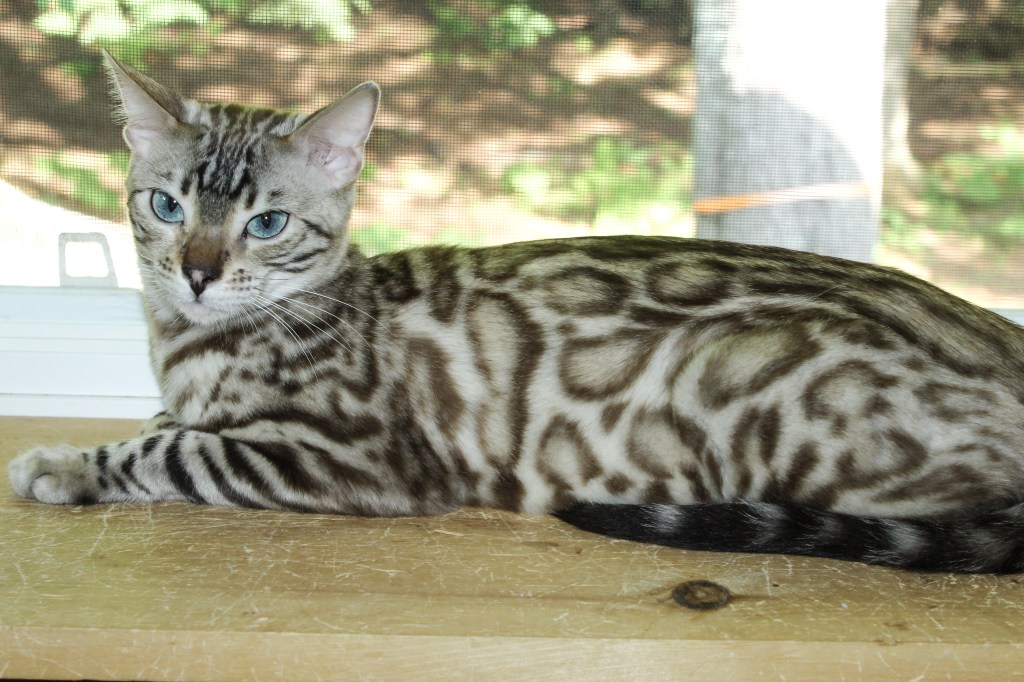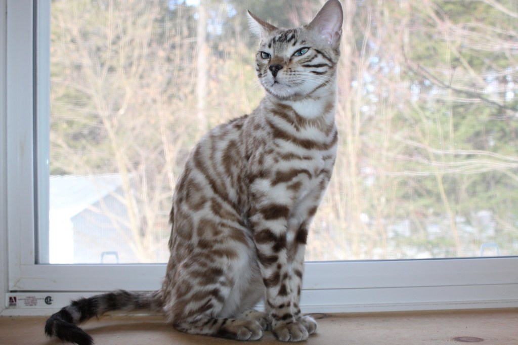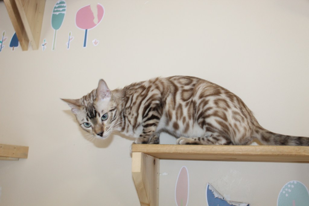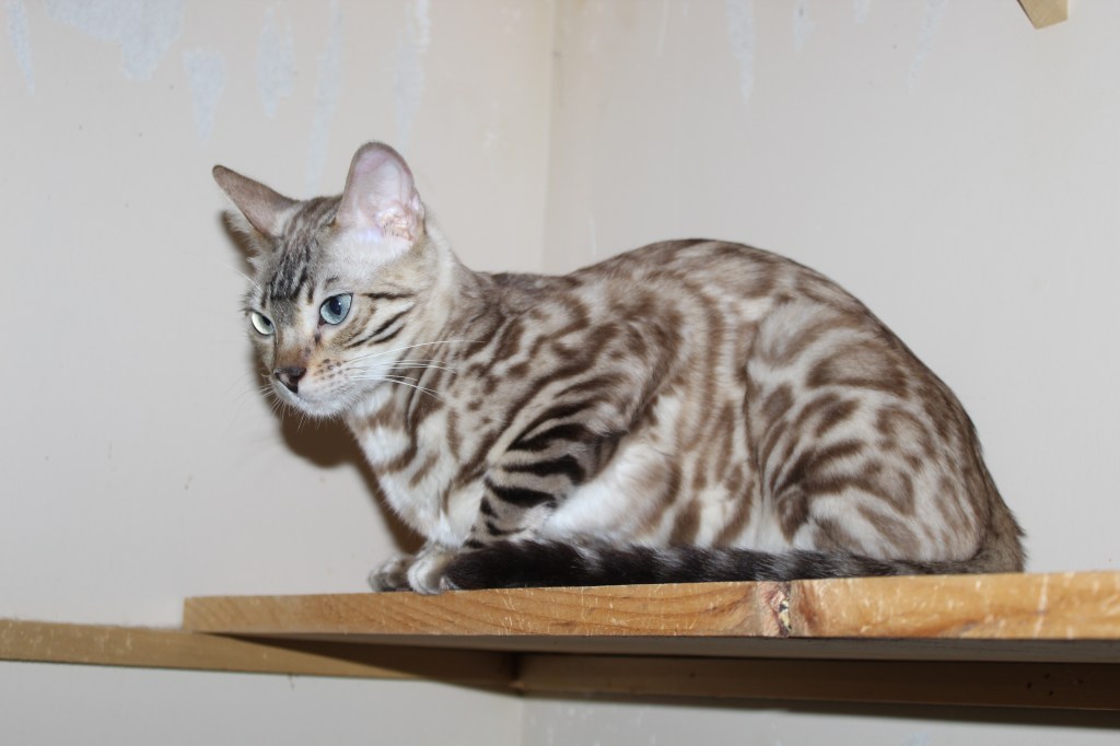 Meet Elsa, a breathtaking snow Bengal whose fur is as pure and dazzling as freshly fallen snow. Her striking beauty is matched only by her gentle and loving nature. Elsa is a devoted mother, nurturing her kittens with warmth and care, ensuring they grow into strong, healthy, and affectionate Bengals. She has a calm, affectionate spirit and adores human companionship, always seeking gentle pets and soft-spoken words. With her serene presence and exceptional mothering instincts, Elsa is truly a treasure, passing down both her stunning looks and sweet temperament to her beautiful kittens.